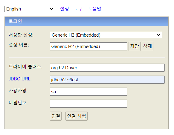 위에 사진 처럼 jdbc:h2~/test 라고 URL주소를 적어 연결 하면 test.mv.db 라는 파일이 생성된다.